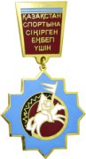 СПОРТИВНЫЙ ЗНАК КАЗАХСТАН Знак Латунь, твердая эмаль (подвеска и колодка) Размеры: 37,5х37,5 мм (подвеска) 24х24 мм (колодка) Застежка на колодке: винт |