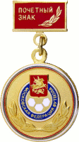 ПОЧЕТНЫЙ ЗНАК МОСКОВСКАЯ ФЕДЕРАЦИЯ ФУТБОЛА Знак Латунь, твердая эмаль Размеры: Ø 31 мм (подвеска) 13,1х23 мм (колодка) Застежка на колодке: цанга |