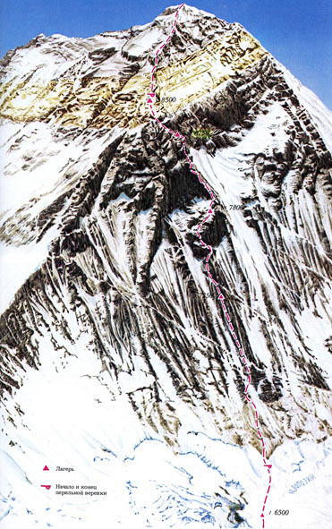 Маршрут восхождения советской экспедиции 1982 года по юго-западному ребру Эвереста. Художник Юрий Рогозин