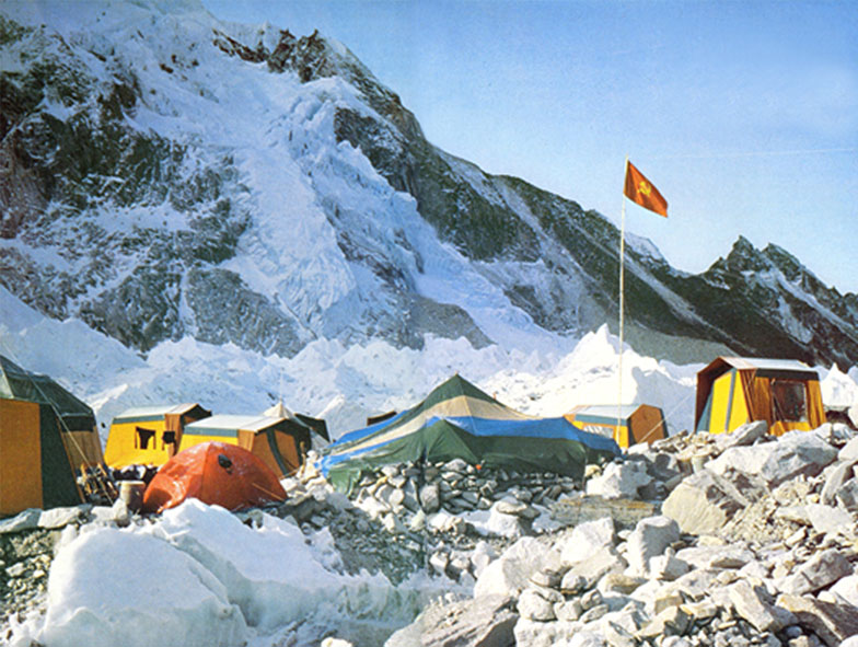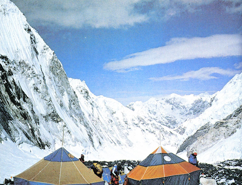 Базовый лагерь советской экспедиции (высота 5300 м) был расположен в русле ледника Кхумбу