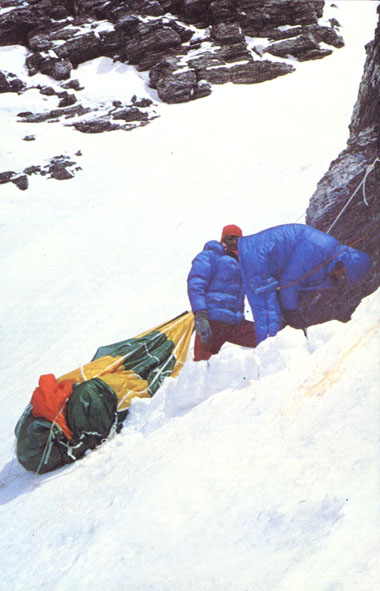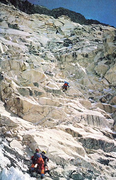 Участок выше IV лагеря (высота 8250 м). Владимир Балыбердин и Эдуард Мысловский прошли этот участок, провесив страховочные верёвки