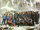 Экспедиция советских альпинистов после покорения высочайшей вершины мира. Слева направо: сидят А. Москальцов, К. Валиев, В. Иванов, М. Туркевич, Б. Романов, В. Онищенко, С. Бершов, С. Ефимов, В. Воскобойников; стоят Е. Тамм, Э. Мысловский, А. Хергиани, В. Хрищатый, В. Хомутов, Л. Трощиненко, В. Шопин, Н. Чёрный, С. Орловский, В. Венделовский, В. Пучков, Ю. Голодов, В. Балыбердин, Ю. Кононов, А. Овчинников