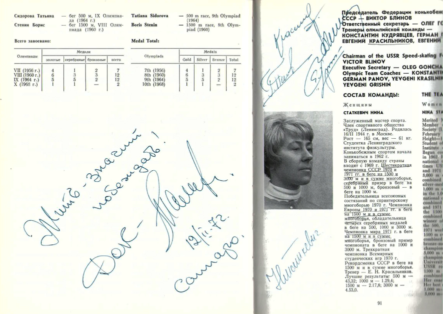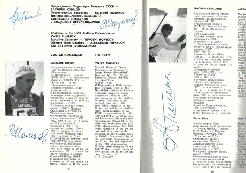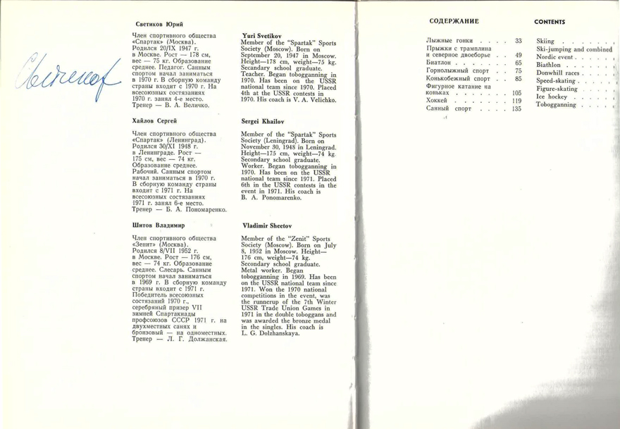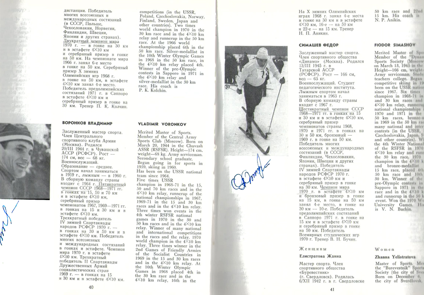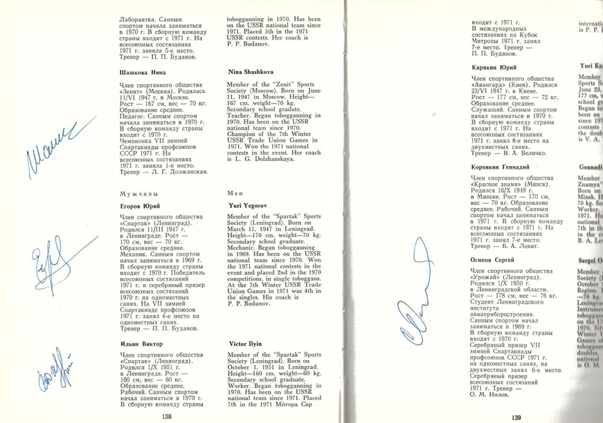 на буклете «Олимпийская команда СССР, Саппоро 1972».