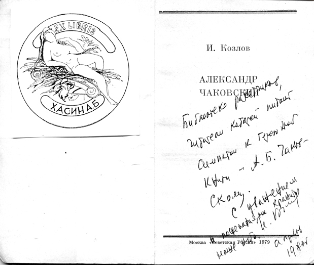 Автограф автора книги о А. Чаковском И. Козлова, 1980 год