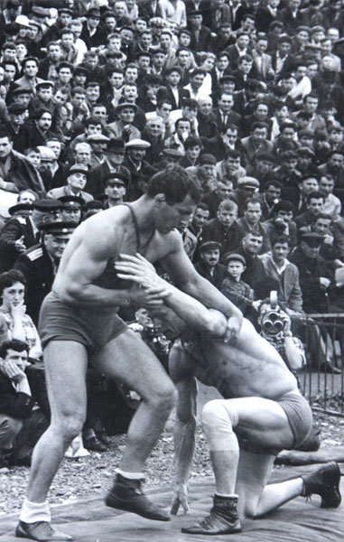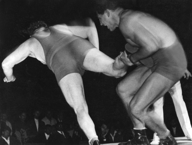 Товарищеский матч сборных команд СССР и Болгарии. Александр Иваницкий пытается провести приём. Но попытка подломить под себя болгарского борца Мехмедова не прошла. В итоге – боевая ничья. Москва, 1961 год. (Комментарий А. Иваницкого)