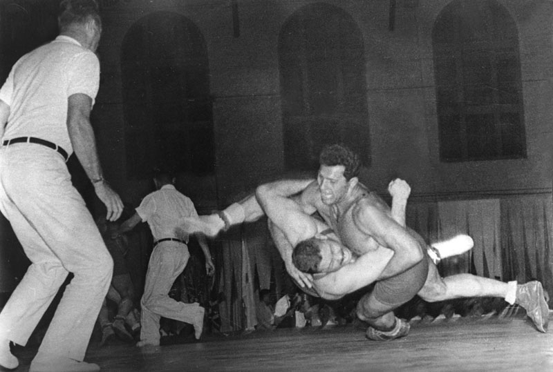 Всесоюзные соревнования по борьбе среди тяжеловесов на приз имени И.М. Поддубного. Александр Иваницкий – победитель соревнований. Ленинград, 1957 год