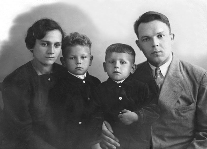 Июль 1941 года. Ленинград. Владимир Селиверстович Иваницкий подал заявление в военкомат о направлении добровольцем на фронт. Мама – Мария Михайловна, брат Юра, Саша и папа – Владимир Селиверстович. Отец взял всех нас с собой в военкомат, чтобы сфотографироваться на память. Никто из нас не знал, что со всеми нами случится завтра... Не могу оторвать взгляд от лиц родителей... Отрешённые, ушедшие в себя. В глазах немой вопрос, попытка вырвать ответ у будущего... (Комментарий А.Иваницкого)