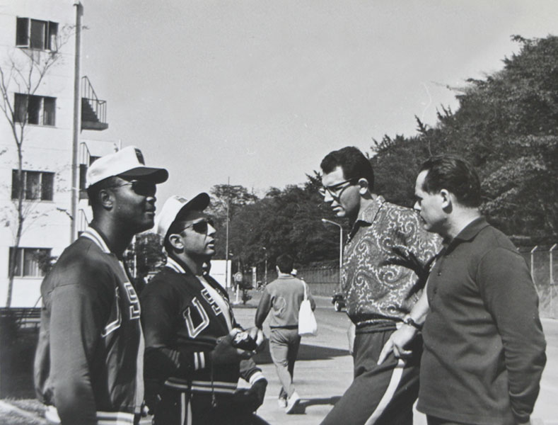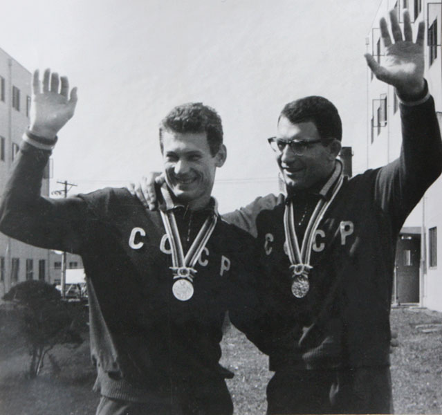 Друзья-победители Игр 1964 года в Токио – Александр Иваницкий и Александр Медведь. В олимпийской деревне с С.А. Преображенским. Перед финальными поединками в номере. В столовой