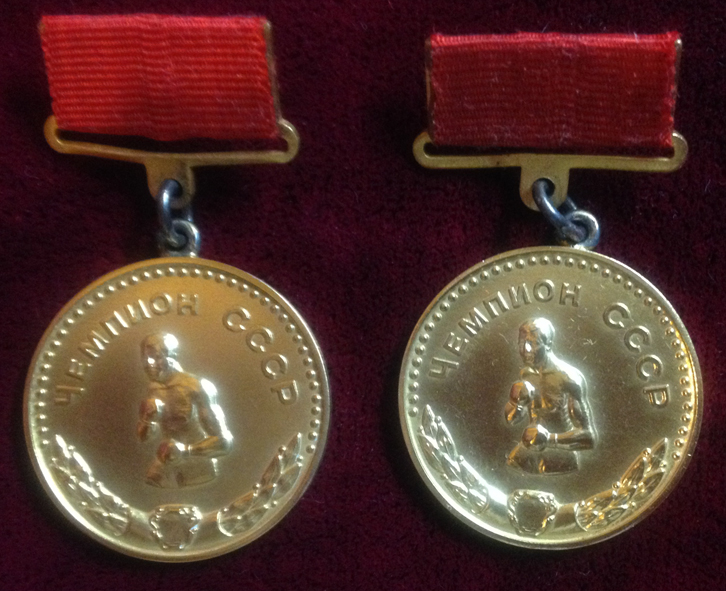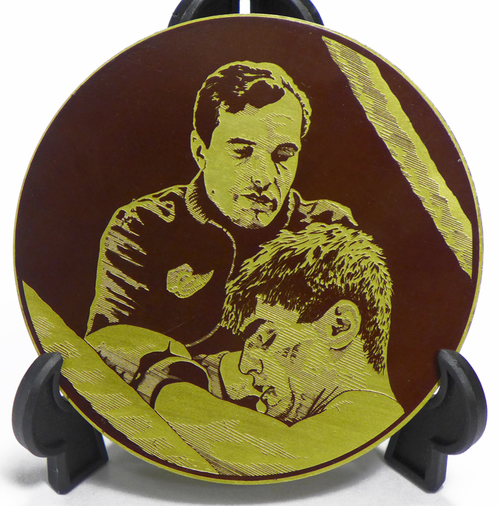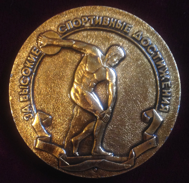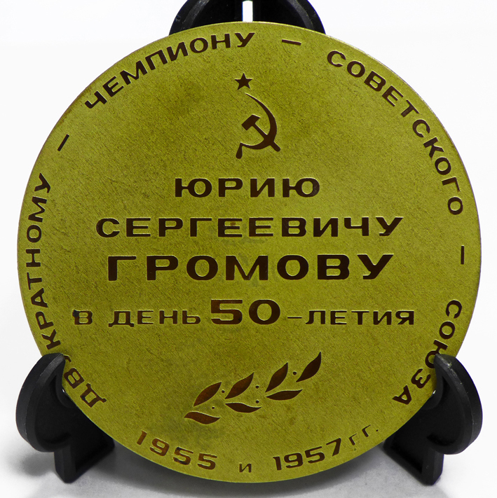 Медали к 50-летию Юрия Сергеевича Громова. На медали справа Юрий Громов со своим бессменным тренером Виталием Андреевичем Островерховым. 1983 год