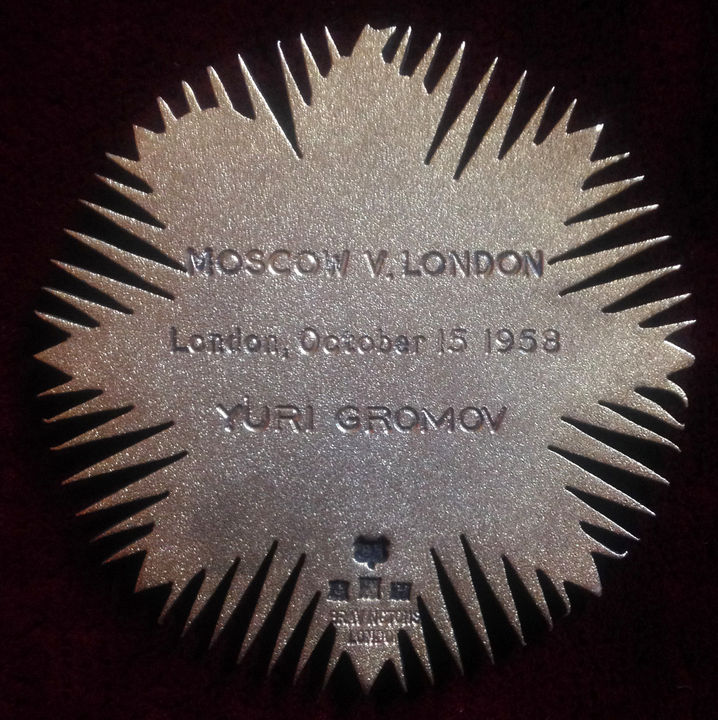 Именная медаль Юрия Громова – победителя матчевой встречи по боксу Москва – Лондон. Лондон, 15 октября 1958 года
