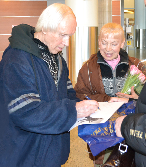 И вот свершилось! Благодаря XXII Олимпийским зимним играм 2014 года в Сочи, куда были приглашены легендарные фигуристы, нам удалось осуществить давнюю мечту Алексея Корчебокова. С огромным волнением встречали мы в Шереметьеве сочинский рейс, которым возвращались в Москву Людмила Евгеньевна и Олег Алексеевич. Из распахнувшихся дверей зоны прилёта буквально выпорхнули навстречу встречавшим их друзьям Людмила и Олег. Такие же лёгкие и изящные, какими их помнят преданные поклонники. И всё наше волнение сразу улеглось – столько доброты и приветливости исходило от великих звёзд мирового фигурного катания.