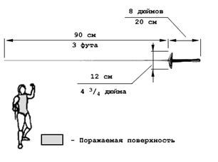 Поражаемой поверхностью в фехтовании на рапирах является только торс спортсмена (спереди и сзади); голова, руки и ноги поражаемой поверхностью не являются.