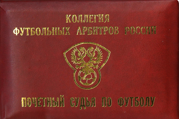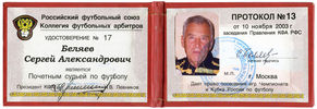 Удостоверение о том, что С.А. Беляев является Почётным судьёй по футболу. (10.11.2003)