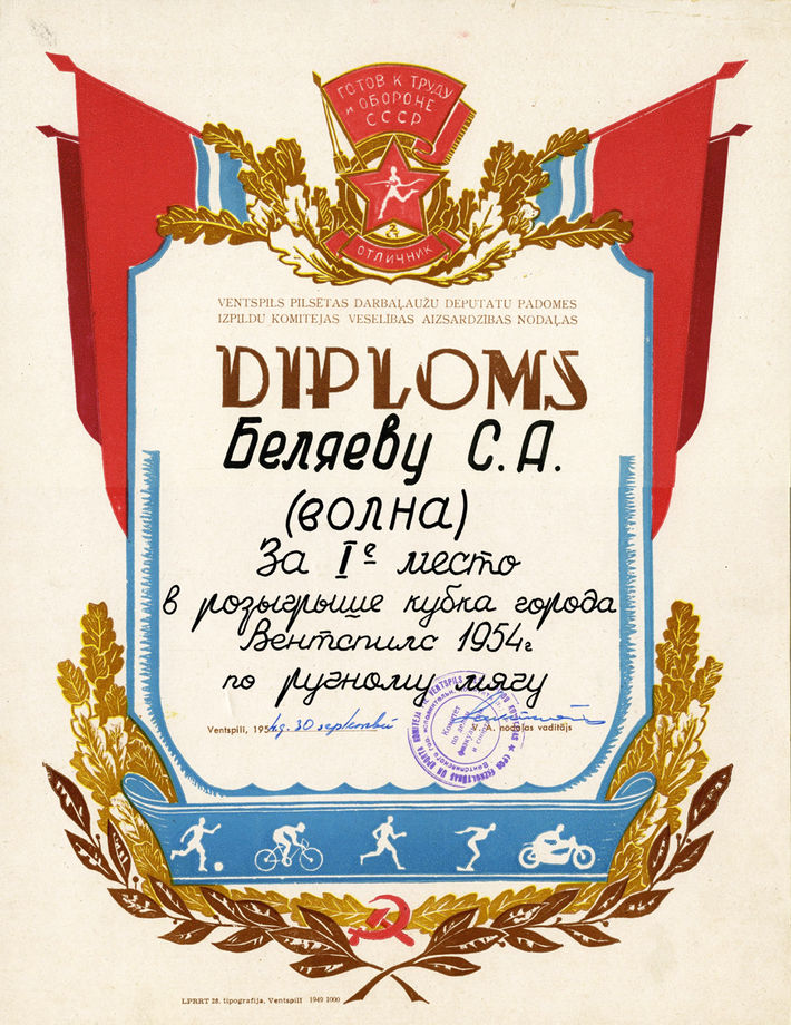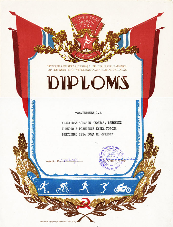 Грамоты от Комитета по делам физической культуры и спорта города Вентспилса. (1954 – 1955)
