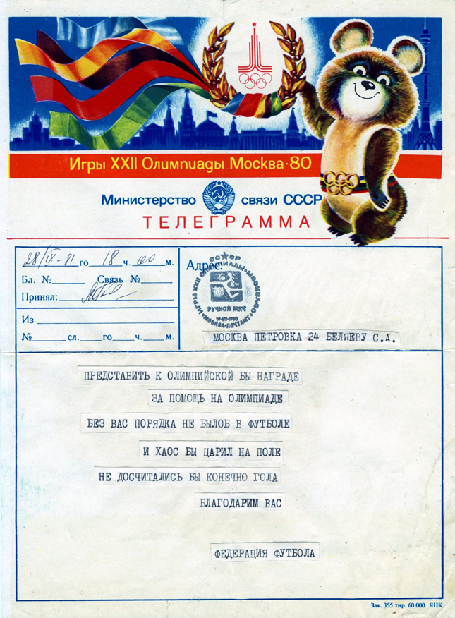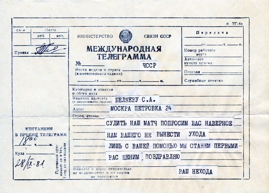 Благодарность от Федерации футбола СССР. (28.12.1978)