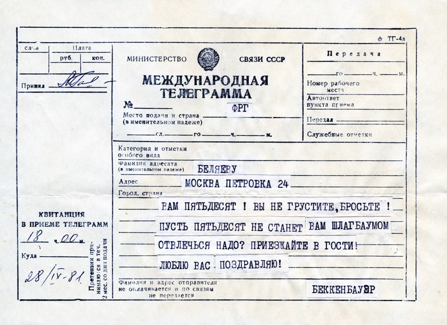 Шуточные телеграммы в адрес юбиляра. (28.09.1981)
