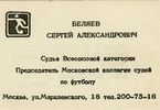 Визитная карточка судьи Всесоюзной категории, председателя Московской коллегии судей по футболу С.А. Беляева (1984)