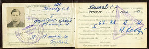 Членский билет Всесоюзного добровольного общества содействия военно-морскому флоту (ДОСФЛОТ). Сергей Беляев вступил в общество 28 июля 1950 года