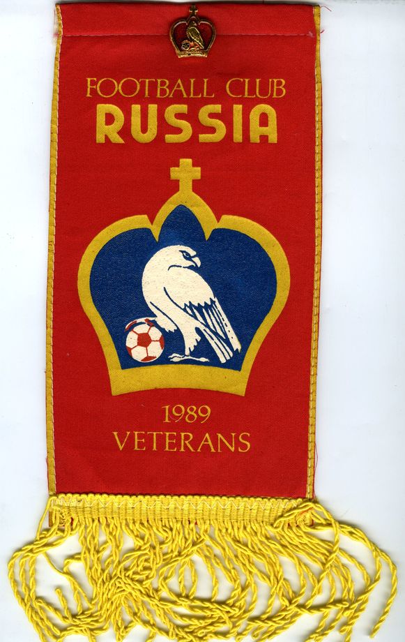 Вымпел «Клуб ветеранов футбола Россия» Руководящий состав Клуба ветеранов футбола Россия: директор ГПЗ-2 (ДЕЦИМА) С. Митичкин, президент клуба В. Амбарцумян, зам. директора М. Посуэло, ст. тренер А. Шестернёв, администратор С. Беляев. (1993)