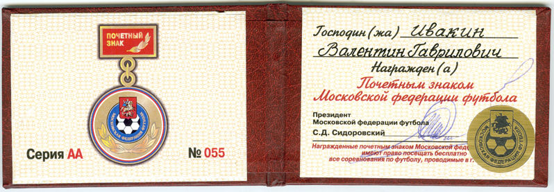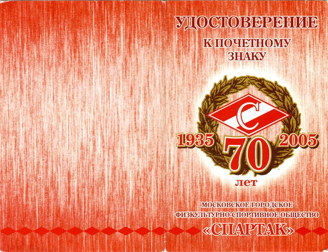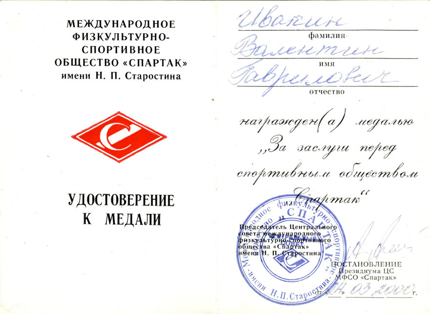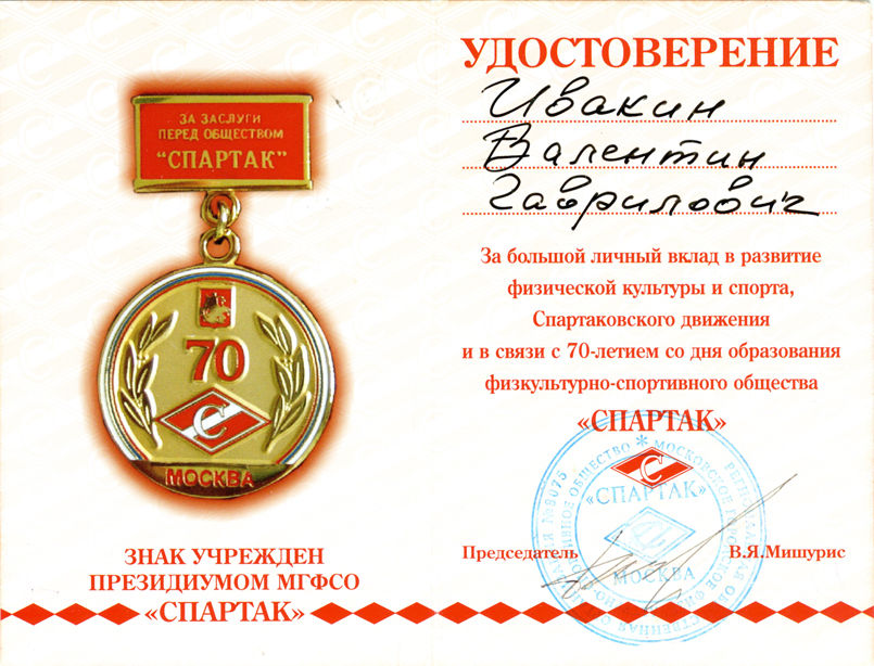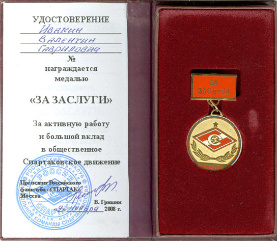 «За заслуги перед обществом «Спартак».