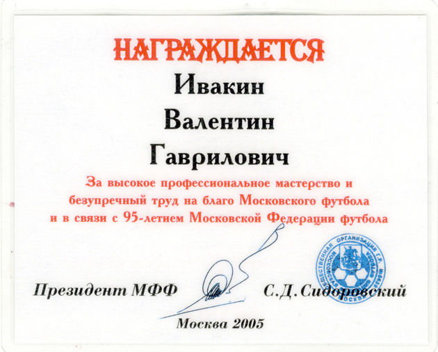 «95 лет Московской федерации футбола».