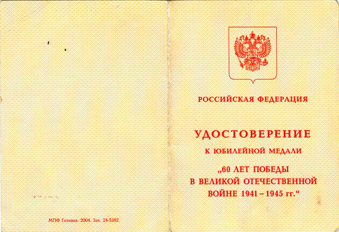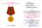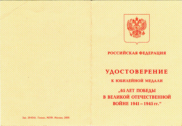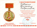 Удостоверение к медали