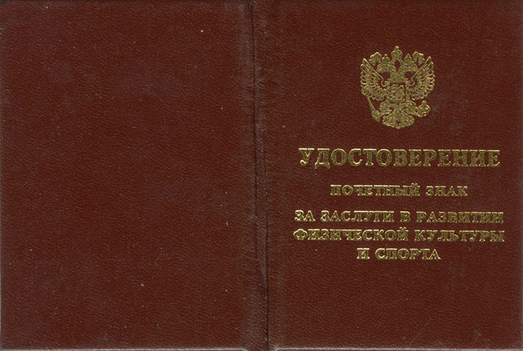 Удостоверение заслуженного мастера спорта России