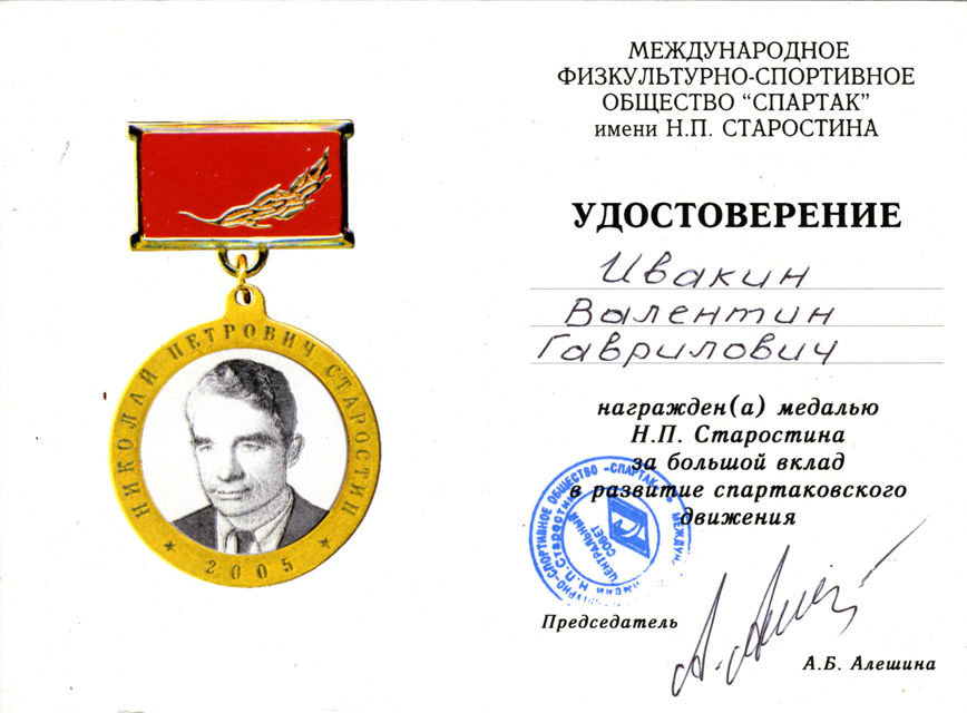«Н.П. Старостин – За большой вклад в развитие спартаковского движения».