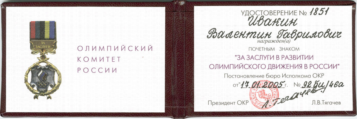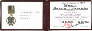 «За заслуги в развитии Олимпийского движения в России».