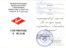 Удостоверение к медали и медаль общества «Спартак»