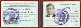 Удостоверение мастера спорта СССР и знак «Мастер спорта СССР».
