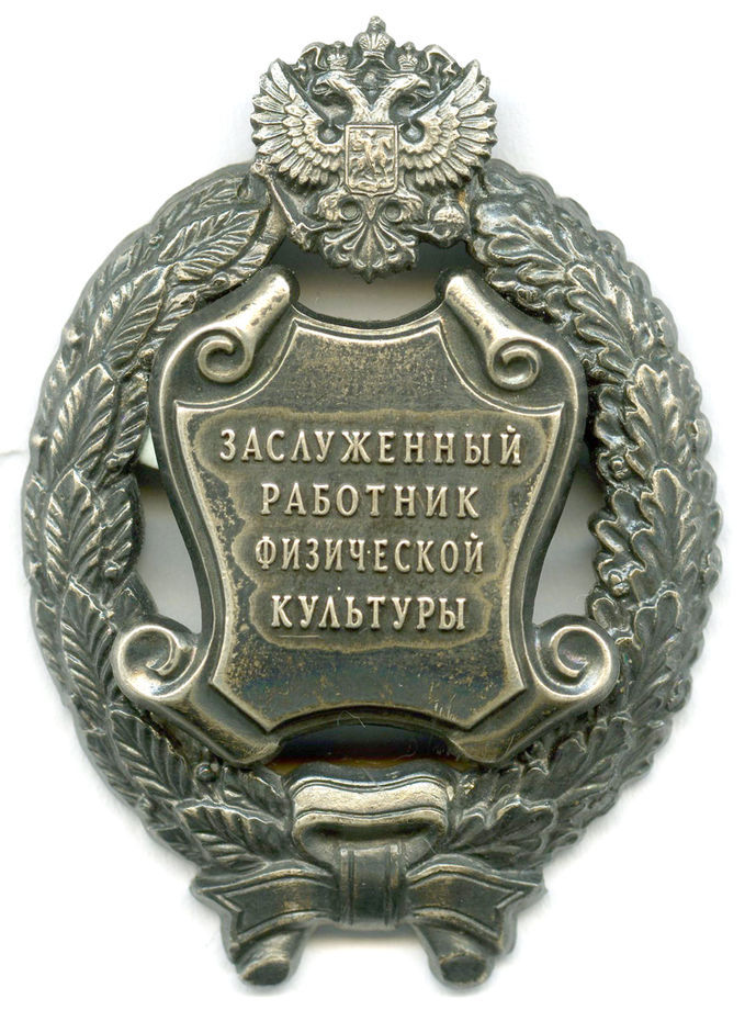 «Заслуженный работник физической культуры» и знак награды.