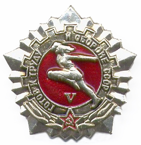 Комплекс состоял из одной ступени и включал испытания по различным физическим упражнениям: бег, прыжки в длину и в высоту, метание гранаты весом 700 граммов, подтягивание на перекладине, лазание по канату, поднимание патронного ящика весом 32 килограмма с земли на плечо и безостановочное движение с ним на расстоянии 50 метров (норматив только для мужчин), плавание (дистанция 100 метров) или плавание в одежде без обуви – 50 метров, плавание в течение 10 минут, езда на велосипеде (10 км) по шоссе и проселку (это испытание могло быть заменено умением управлять трактором, мотоциклом и т.п.), гребля (1 км), лыжные гонки (в южных районах – верховая езда) в противогазе (1 км). Кроме того, комплекс включал проверку знаний в объеме КВЗ (Кружков Военных Знаний) по любой специальности: стрелково-тактической, пулеметному делу, химической, саперно-маскировочной, связи и санитарной. Проверяли теоретические знания в области физической культуры и спорта. На производстве или в учреждениях необходимо было быть ударником труда, выполнять общественную работу.