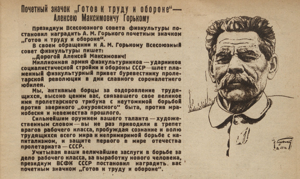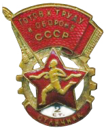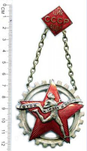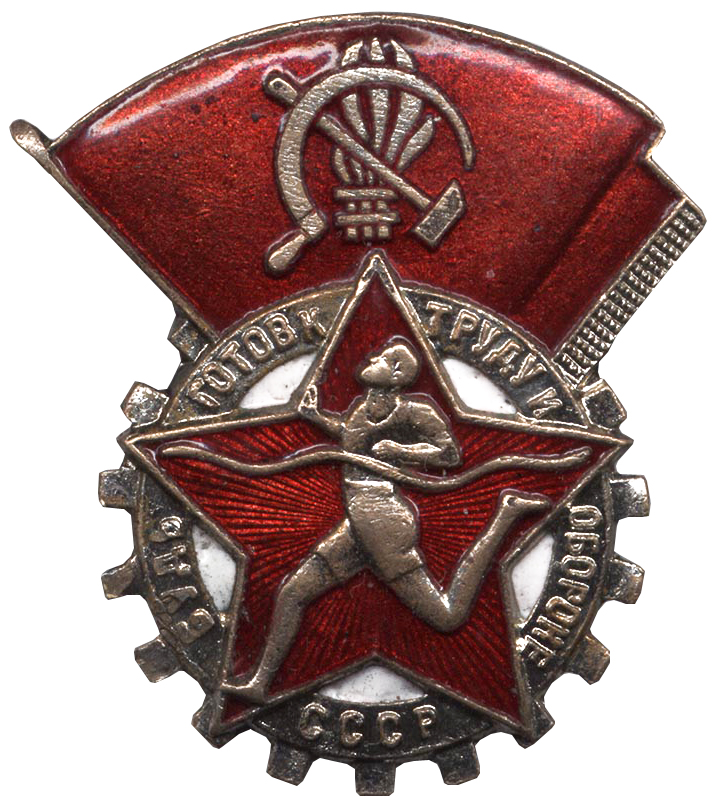 На основании лучших эскизов художник Михаил Ягужинский разработал первый знак ГТО.