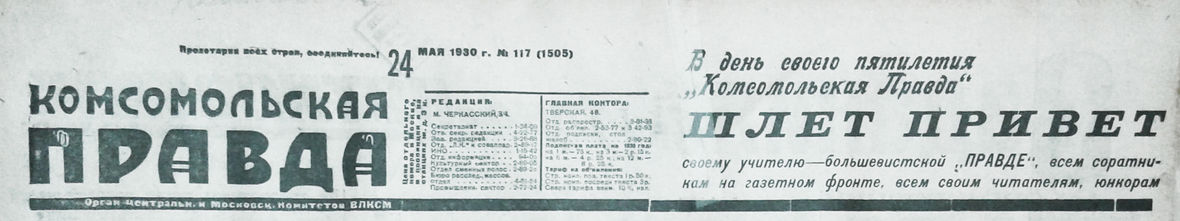 Газета «Комсомольская Правда», 24 мая 1930 года