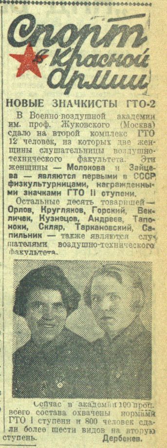 Первыми в стране женщинами, получившими знаки ГТО II ступени, были слушательницы Военно-воздушной академии.