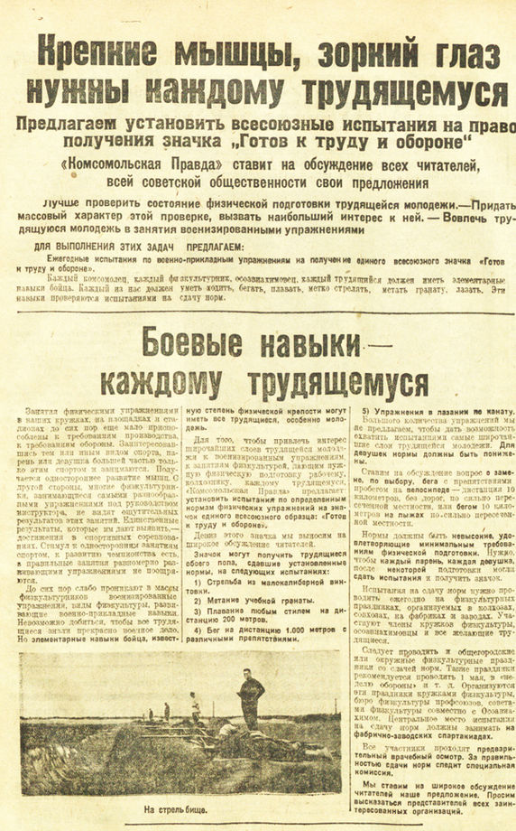 24 мая 1930 года газета «Комсомольская Правда» опубликовала материал о необходимости введения единого критерия для оценки физической подготовки молодёжи.