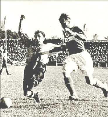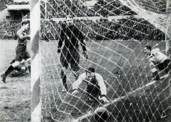 1952 год. Москва. Бобров забивает гол в ворота сборной команды Венгрии (товарищеский матч)