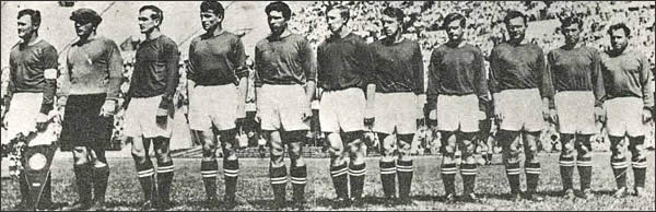 Сборная СССР перед очередным товарищеским матчем со сборной Финляндии. Слева направо: В. Бобров, Л. Иванов, Ю. Нырков, К. Крижевский, А. Башашкин, И. Нетто, А. Петров, А. Ильин. В. Николаев, Ф. Марютин. В.Трофимов