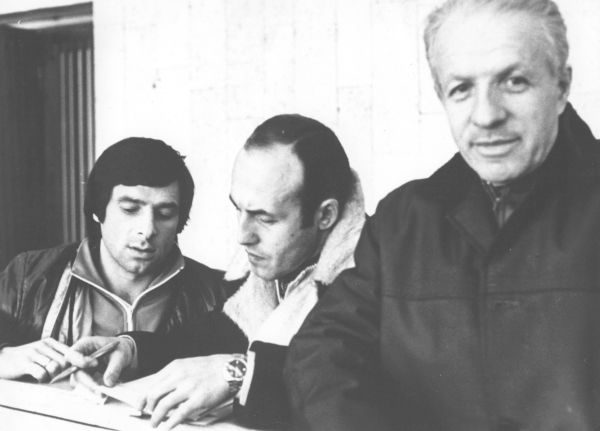 На фото: Г. Цыганков, О. Белаковский, В. Харламов,