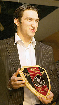 Приз «Харламов Трофи» Александру Овечкину вручает