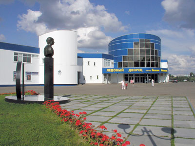 а площадь перед дворцом украшает памятник прославленному хоккеисту