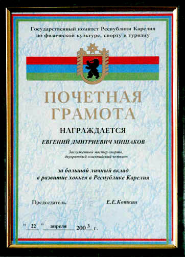 Почетная грамота Государственного комитета Республики Карелия