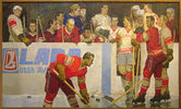 «Сборная команда по хоккею» Художник Сибирский. 3,0 х 1,5 м. Холст, масло. Картина находится в коллекции Музея Спортивной Славы ЦСКА