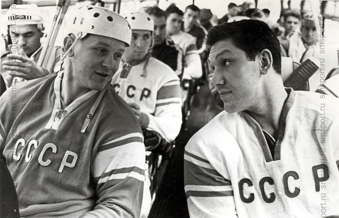 С Президентом Австрии Францем Йозефом Йонасем на чемпионате мира 1967 года в Вене после матча с командой Канады, который завершился со счётом 2:1 в пользу советской сборной