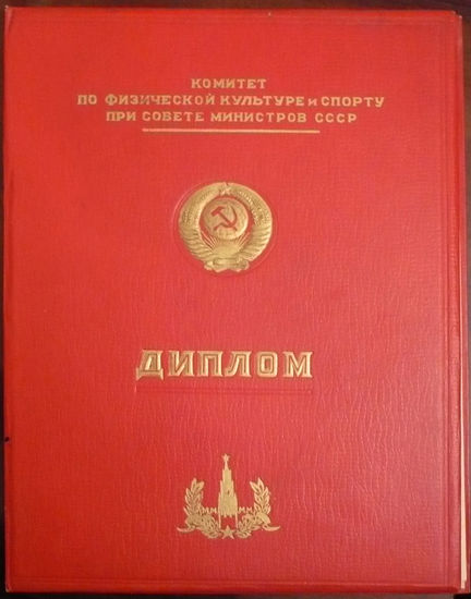 Виктор Шувалов – 5-кратный чемпион СССР (1951, 52, 53, 55, 56). Медаль и диплом чемпионата СССР 1956 года
