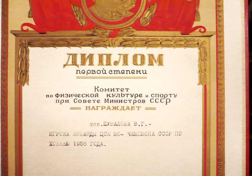 Диплом олимпийского чемпиона по хоккею VII Олимпийских зимних игр 1956 года в Кортине-д'Ампеццо Виктора Шувалова (СССР)