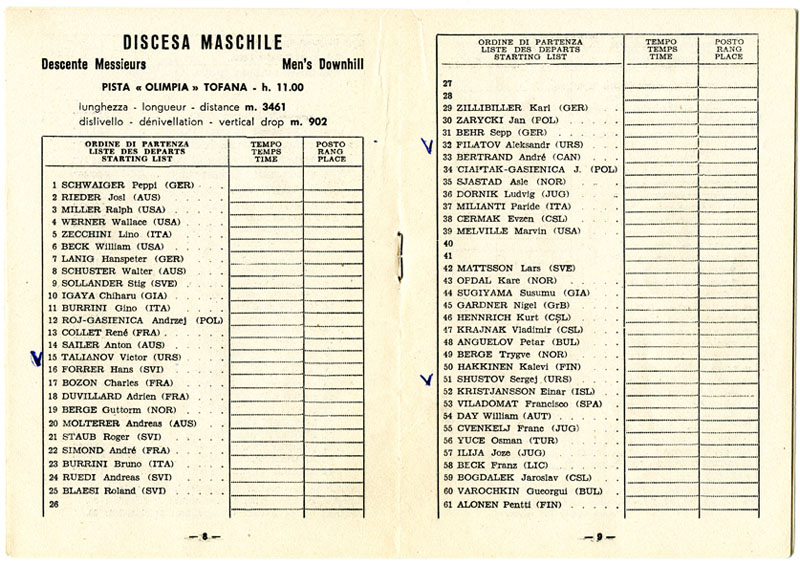 Информационный буклет VII Олимпийских зимних игр 1956 года в Кортине-д'Ампеццо