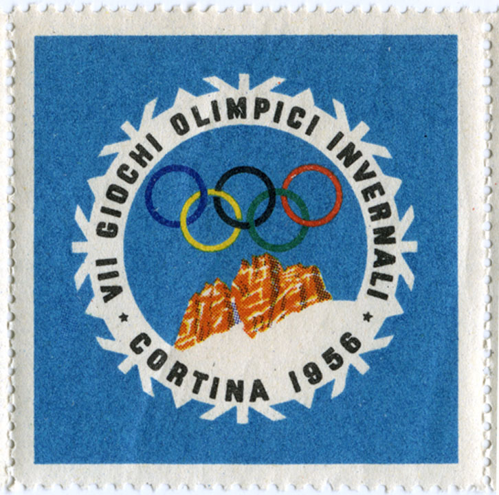 Почтовая марка, выпущенная в честь VII Олимпийских зимних игр 1956 года в Кортине-д'Ампеццо