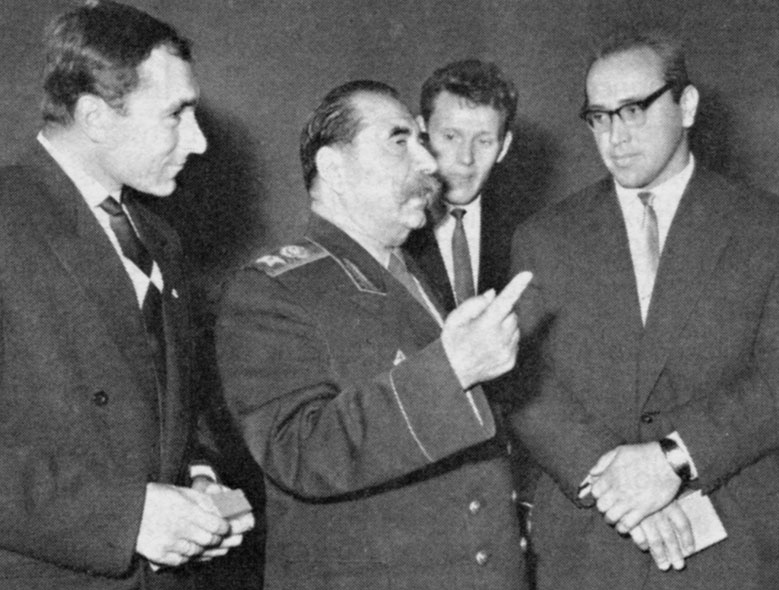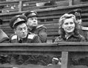 Командующий ВВС МВО В.И. Сталин на трибуне тульского велотрека. Справа – чемпионка СССР М. Максимова. По распоряжению командующего Евгений Гришин был призван в ВВС и с 1949 года выступал за Вооружённые Силы